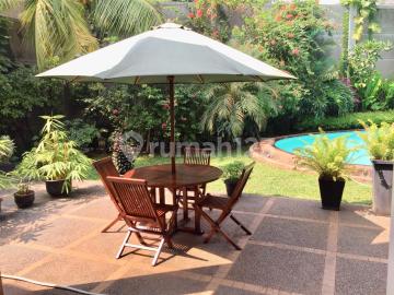 Di Sewakan Rumah Bagus Murah di Cilandak Jaksel !!! Semi compound: Cilandak Bwh 1 no 65, Spacious & bright 5 BR house with big pool, gazebo & big garden.. Close to Pondok Indah & Cipete French School.. Luas tanah 1000m Luas bangunan 2 lt: 750 5 Bedrooms, pool & garden. Tropical mini resort style Harga Sewa : Usd 5000/bulan.min 1 th