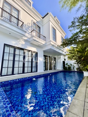 CILANDAK - [FOR RENT]: RUMAH CANTIK, DESIGN AMERICAN CLASSIC DENGAN PRIVATE POOL, DALAM TOWNHOUSE. ----------- FASILITAS RUMAH: - Security Post dengan CCTV - Swimming Pool - Internet and TV Cable Ready - Teras Belakang - Lights all LED - Ruang Tamu - Ruang Keluarga - Big Kitchen - Ruang Kerja / Library - Dry Kitchen - Wet Kitchen - Water Heater Solahart ----------- UNIT SPECIFICATION: LT: 400 m² | LB: 600 m² KT: 5 | KM: 4 KP: 2 | KMP: 1 Bangunan: 2 Lantai Listrik: 23.000 watt Garasi: 2 mobil Carport: 2 mobil Hadap: Selatan PRICE: $ 6,000 / bulan Minimum sewa: Per 2 Tahun Compound fee: Rp 4.000.000 / bulan (Security, kebersihan, perawatan kebun, pool maintenance, fogging) Belum termasuk pajak ----------- #Nd