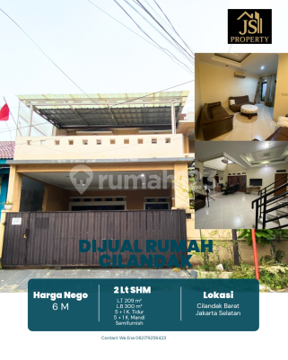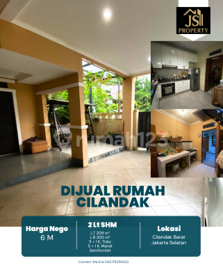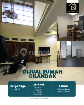 DIJUAL RUMAH Komp. MPR, 2 Lantai di Cilandak Barat - Jakarta Selatan Luas Tanah 209 m² Dimensi 10 x 12,9 m² Luas Bangunan 300 m² 2 Lantai Kamar Tidur 5 + 1 ART Kamar Mandi 5 + 1 Full Furnish : Semi Listrik 11000 Watt Air Pam Sertifikat SHM Hadap Utar Hal yang Menarik : Bebas Banjir, Dekat dengan MRT, Mall, Perkantoran, Bisa u/ kost2an Harga 6 M Nego