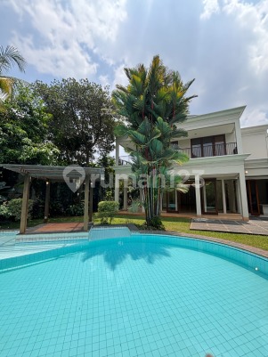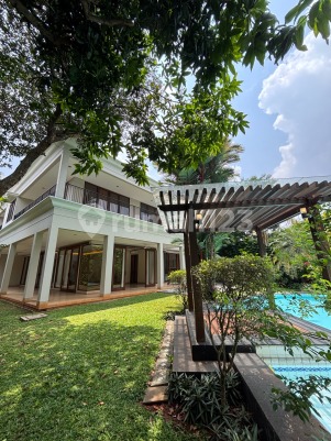 For Rent Two-story luxurious compound house at Cilandak Barat, South Jakarta. resort style with lush garden , open space concept and has good circulation . Very strategic Location , close to Cipete Mrt Station, Urban Forest , France Lychee School, Jis School, Shopping center and Business center polution free , noise free, flood free Spec: 5Bedroom +1Study room 4Bathroom swimming Pool carpark up to 8cars Service area Modern kitchen Min rental 1-2 year