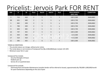 Available 9 Houses For Lease : 4 Houses Each US Dollar 2,750 x IDR 16.000 = IDR. 44 M / Month 5 Houses Each US Dollar 2,500 x IDR 16.000 = IDR 40 M / Month Lokasi Jl TB Simatupang Jaksel - Mudah Diakses Dari Depok, Tangerang - Toll JORR, Terhubung Toll Jkt-Cikampek, Jagorawi, Toll Bandara Soekarno Hatta - Transjakarta, MRT, Light Rail Transit - 3 International School - Meeting Spots Pebisnis & Ekspatriat #152114