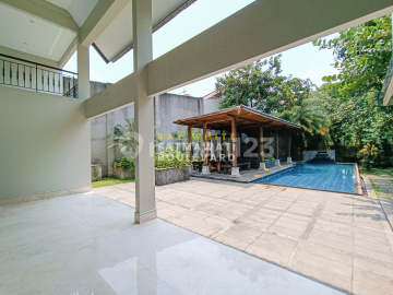 Spesifikasi properti : • Luas tanah 1.349 m² • Luas bangunan 1.344 m² • 2 lantai • 4 bedrooms • 5 bathrooms • 6 parking space • Outdoor patio & gazebo • Kolam renang • Taman di depan & belakang rumah • Primary bedroom dengan walk in closet • Ruang kerja view taman ------------------------ Kondisi properti : • Desain modern tropis • Resort vibes • High ceiling • Banyak ruang terbuka • Siap huni • Akses jalan lebar • Bebas banjir ------------------------ [ADN #12474]