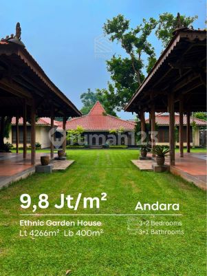Bismillahirrahmanirrahim [ For Sale ] A N D A R A E T H N I C G A R D E N H O U S E Lahan Luas Dua Muka Jarang Ada - Akses Mudah - Lokasi Dkt Pintu Tol - Jalan Lebar - Lingkungan Asri - Cocok Untuk Rumah Mewah Rumah Komersil Desain Etnik Sering Di Pakai Untuk Acara Detail : Sertifikat Hak Milik Terdiri (4 Shm) Bangunan 1 Lantai Hadap Timur Laut Dan Barat Daya Luas Tanah 4.266 M² Luas Bangunan 400 M² 3 Kamar Tidur 3 Kamar Mandi 2 Kamar Pembatu 1 Kamar Mandi Pembantu 1 Paviliun Fasilitas: - Kolam Ikan - Full Jati - Parkir ±30 Mobil - Taman Luas Harga Rp. 35 Milyar "Bisa Ambil Setengahnya" More Info Astrid 0815xxxxxxxxDijualtumahandara #Jualtumahandara #Rumahandaradijual #Rumahdiaphuni #Rumahethnic #Ethnicgardenhouse #Rumahmewah #Aksesmudah #Rumahcantik #imm