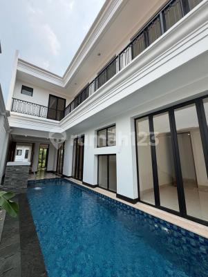 Brand New American premiumnya Area Cipete Jakarta Selatan 3 lantai Luas Tanah 250 m2 Luas Bangunan 600 m2 4 Kamar Tidur + 2 4 kamar mandi + 1 Pantry AC 2 gudang Private Swimming Pool Lantai Marmer Garasi 4 Mobil Carport 2 mobil Cctv Sanitary Grohe dan Kohler. SHM dan hadap selatan Harga Rp 17.5 Milyar nego
