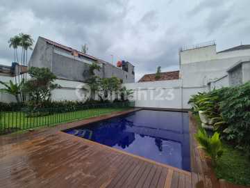 Disewakan rumah Asri, nice garden, di dalam lomplek di Cipete. Luas tanah 853sqm, bangunan 569sqm 4 bedroom, + 1 study room , 4 bathroom living room + dining room and back terrace dry kitchen + wet kitchen 2 storey 2 storage 2 maid room, 1 maid bathroom swimming pool nice garden Garasi ; 2 car carport 2 car Price ; Usd 3.500/ month + VAT Compound fee : Usd 330 + VAT covering 24 hours guard at the main gate, 24 hours access to gym room, 24 hours back-up generator, garbage disposal and maintenance of common areas.