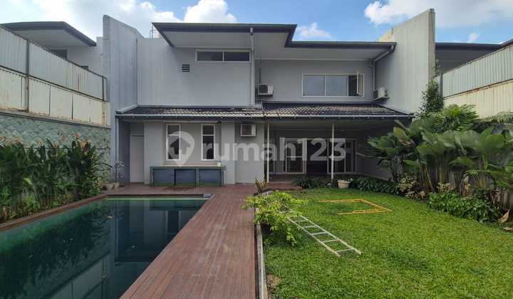 Disewakan rumah asr8 di dalam compiund dekat French School luas tanah/ bangunan : 390/348m2 4 bedroom and 1 study room 4 bathroom living room and dining area open kitchen wet kitchen swimming pool and garden 2 maid room and 1 maid bathroom garage : 2 car carport : 1 car security 24 hrs one gate system Thia compound have kids play area and foot ball area for kids. nice compound. there ia adsitional Usd 335/ month for xompound fee