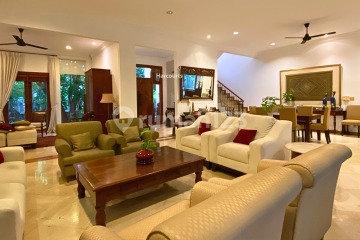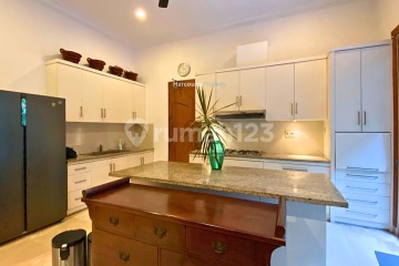 Luas tanah +/- 600m2 Luas bangunan 734m2 Bangunan 2 lantai Kamar tidur 4 Kamar mandi 5 Ruang studi 1 Kamar tidur ART 3 Kamar mandi ART 1 Ruang keluarga 2 (lantai 1 dan lantai 2) Dapur bersih dan kotor Ruang makan Service area Full furnished Gudang Taman depan dan belakang Kolam renang Post Security Garasi 2 mobil Carport 3 mobil Harga sewa USD 4.500 per bulan (exclude tax)
