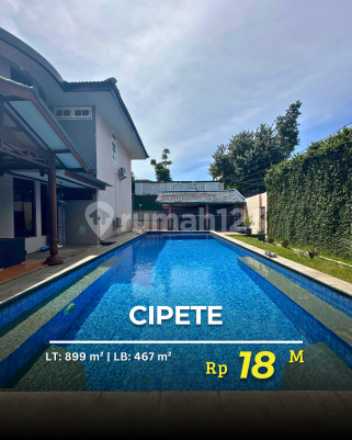 Dijual - Rumah Cipete Utara Rumah Dalam Cluster, Dekat MRT, Hunian Tenang 2 Lantai SHM LT : 899 LB : 467 4 KT, 4 KM, 1 Ruang Kerja / Belajar 1 KT + KM ( Maid ) Dapur 2 w/KitchenSet Meja Billiard Full AC Swimming Pool Garasi 2 Mobil Carport 8 Mobil ( Driver ) Area + KM PLN 23.000 watt Telkom 1 line Jet Pump Semi Furnished Station Haji Nawi Harga 18 M