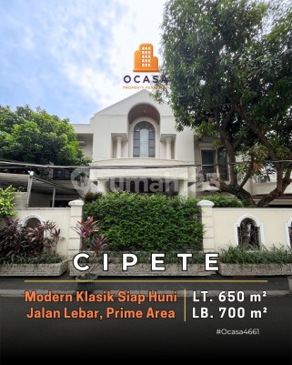 FOR SALE - CIPETE RUMAH MODERN KLASIK SIAP HUNI Row Jalan Lebar Lingkungan Tenang Selangkah ke MRT, Sekolah Prancis & Cipete Raya Luas Tanah 650 m² Luas Bangunan 700 m² Single House Bangunan Secondary 2 Lantai Hadap Barat SHM Kamar Tidur 6 (4 dengan kamar mandi didalam) Kamar Mandi Luar 2 Kamar ART 2 Gudang Garasi muat 3 mobil Carport 2 mobil Harga Rp 20 M nego tipis Ocasa4661 Listed by Ocasa