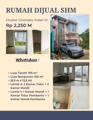 Luas tanah : 105m² Luas bangunan : 100m² Jumlah kamar tidur : 2+1 Jumlah kamar mandi : 3+1 Listrik berapa : 7700 kwh Sumber airnya PAM atau sumur : sumur Legalitas SHM Rumah hadap kmana : Utara Harga : 2.250M