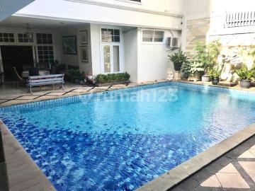RUMAH MEWAH DI FATMAWATI JAKARTA SELATAN - hadap : Selatan - Luas Tanah : 672 M2 - Luas Bangunan : 600 M2 - Km. Tidur Utama : 1 - Km. Tidur Anak : 4 - Kamar Mandi : 4 - Km. Pembantu : 3 - Km. Mandi Pembantu : 3 - Kolam Renang - Ruang Bilas - Garasi : 2 Mobil - Carport : 4 Mobil - Genset - full furnish code listing FM0624