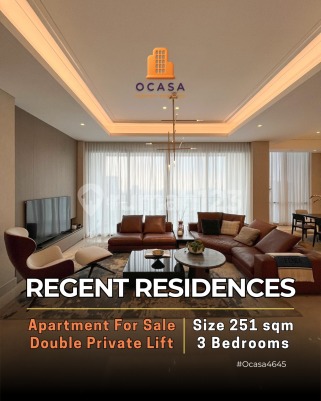 FOR SALE Apartment Regent Residences Jakarta Selatan Spesifikasi Unit: Luas ±251 m² Kamar Tidur 3 Kamar Mandi 3 Kondisi: Brand New Tower/Floor/View: City View Tersedia di lantai rendah dan tinggi Tersedia dalam: Bare condition Semi-Furnished (Standar Developer) Lift Pribadi / Double Private Lift Material & Finishing: Lantai Marmer Impor Peralatan Dapur: Liebherr & Gaggenau Sanitari: Toto Neorest, Villeroy & Boch, Hansgrohe Peralatan tambahan: Bosch Desain Interior & Furnitur Show Unit oleh Bika Fasilitas: 24 jam Concierge & Doorman Service Reserved Parking Private Chef & Butler Service (by Regent Hotel) Swimming Pool & Whirlpool Fitness Center & Yoga Studio Spa Therapy Room & Relaxation Lounge Sky Deck Kids Club & Playground Co-Working & Meeting Room Multipurpose Room Informasi Tambahan: Satu kawasan dengan: Office Tower, Serviced Apartment, Regent Hotel, dan Crowne Hotel Regent Hotel: Lantai 1-14 Fasilitas: Lantai 15-16 Regent Residences: Lantai 17-57 Developer: KG Global (developer Senayan City, The Peak Apartment, The City Tower, TCC Batavia, Tamini Square, Emporium Pluit Mall, dll.) Harga Mulai Dari Rp 17 M (± Rp 68-72 juta/m², tergantung zona lantai) Ocasa4645 Listed by Ocasa