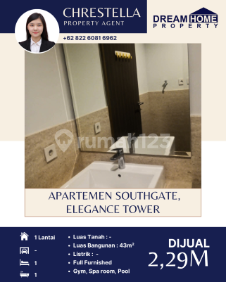 Dijual: Apartemen Southgate, Elegance Tower FULLY FURNISHED (sebelah AEON Mall Tanjung Barat Jakarta Selatan) • Apartment Name: Southgate • Location: Tanjung Barat • Tower/Floor/View: Elegance/29th floor/City View • Size: 43 m2 • Bedroom: 1 • Bathroom: 1 • Condition: Furnished – Modern Minimalist / Japandi / Brand New • Facility: Gym, Spa room, Pool, Basket, Tennis, wall climbing, jogging track,.etc • Selling Price: Rp 229000xxxxnegotiable) • WhatsApp: 081127xxxx