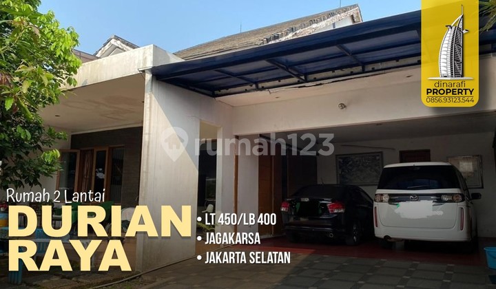 Jual rumah pinggir Jalan Durian Raya Jagakarsa Jakarta Selatan. #dinarafiproperty 0856xxxxxxxx. Spesifikasi : - Luas Tanah 450 m2 - Luas Bangunan 400 m2 - SHM + IMB - Kamar Tidur 4 + 1 - Kamar Mandi 4 + 1 - Hadap Timur - Listrik 5.500 Watt - Harga Rp8 Milyar (Nego) Akses Strategis : - RSUD Jagakarsa - Tol Andara dan Tol TB Simatupang - Stasiun KRL Lenteng Agung - Pusat Pendidikan: Al-Azhar, Univ Pancasila, APP, UI, ISTN dll - Kebun Binatang Ragunan - Perkantoran Cilandak