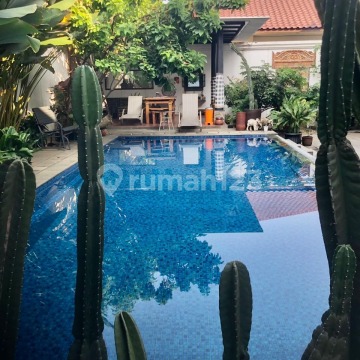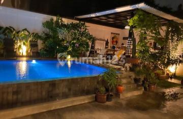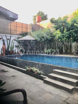 Rumah mewah etnik di Jakarta Selatan. Hi-end quality dengan design yg sangat unique. LT 700m, LB 488m - SHM Garasi 2 mobil, Carpot 4 mobil. Kolam Renang Infinity Style 4x9M + Shower Area. Pergola 5x5M Tanah/rumah ngantong. Listrik 11.000 kwh. AC 8 unit, CCTV 4 Camera HD. 3 gebyok jati, pintu/kusen/tangga jati Jawa Timur. Kitchen Set/Lemari/Wardrobe/Walk in Closet designed & made by Vivere. 5 KM, 4 kamar mandi (kamar mandi utama dgn whirlpool), kamar pembantu, pantry & service area. Rumah nuansa etnis modern. Sangat terawat, seperti rumah baru. Lingkungan rumah ala resort di Bali. Malam hari dengan lampu2 taman yg eksotis. Harga 12.5 M (negotiable)