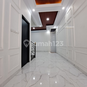 RUMAH MODERN CLASSIC - JAGAKARSA, JAKARTA SELATAN Spesifikasi : Luas Tanah : 74 m² Luas Bangunan : 200 m² Kamar Tidur : 3+1 Kandi : 3+1 Dinding Full Bata Merah Lantai : Full granit 80x80 Dapur : Granit Kamar mandi : keramik lokal (roman) Kusen pintu : Alumunium Pintu : Kayu kamper Oven Plafon : gypsum Atap : Baja ringan & genteng keramik Sanitasi : Toto Toren Perabotan : Unfurnished Listrik : Daya 3500 watt Prabayar Garasi : Carpot 2 mobil Bangunan Menghadap : Barat Sumber Air : JetPump Akses Jalan : Mobil Bebas Banjir : Ya