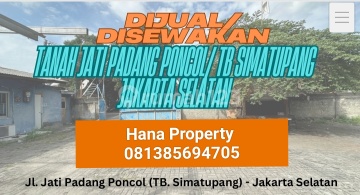 DIJUAL / DISEWAKAN Lahan tanah area TB simatupang Jatipadang Poncol samping kantor pajak Luas 913 m2 harus jual 33 M nego harga sewa 875 juta per tahun minimal sewa 5 tahun hubungi Hana Property