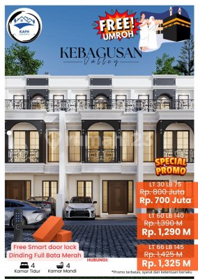 Promo akhir tahun: Free 1 Tiket Umroh (Promo Terbatas) !! Keberangkatan Juli 2026 . Dijual Rumah 2 lantai + Rooftop dalam Cluster di daerah Kebagusan, Jakarta Selatan Berlokasi dalam Cluster 21-unit dengan Akses jalan 2-mobil dan Bebas Banjir . Spesifikasi : . Tipe A: - Bangunan 2-lt - Luas Tanah 30 m2 - Luas Bangunan 75 m2 - 3 Kamar Tidur - 2 Kamar Mandi - Balkon - Rooftop - Carport HARGA 700 Juta (Cash Only) . Tipe B: - Bangunan 2-lt - Luas Tanah 35 m2 - Luas Bangunan 80 m2 - 3 Kamar Tidur - 2 Kamar Mandi - Balkon - Rooftop - Carport HARGA 835 Juta (Cash/KPR) . Tipe C: - Bangunan 2-lt - Luas Tanah 40 m2 - Luas Bangunan 90 m2 - 3 Kamar Tidur - 2 Kamar Mandi - Balkon - Rooftop - Carport HARGA 925 Juta (Cash/KPR) . Tipe D: - Bangunan 2-lt - Luas Tanah 45 m2 - Luas Bangunan 100 m2 - 3 Kamar Tidur - 2 Kamar Mandi - Balkon - Rooftop - Carport HARGA 1 M (Cash/KPR) . Tipe E: - Bangunan 2-lt - Luas Tanah 60 m2 - Luas Bangunan 140 m2 - 4 Kamar Tidur - 4 Kamar Mandi - Balkon - Rooftop - Carport HARGA 1,29 M (Cash/KPR) . Tipe F: - Bangunan 2-lt - Luas Tanah 66 m2 - Luas Bangunan 145 m2 - 4 Kamar Tidur - 4 Kamar Mandi - Balkon - Rooftop - Carport HARGA 1,32 M (Cash/KPR) . Lokasi Aman dan Strategis : - Lokasi Bebas Banjir - One-Gate System - 450 meter ke Kantor Kelurahan Kebagusan - 850 meter ke Jalan Kebagusan Raya (Akses JakLingko/Angkutan Umum) - 1,6 km ke AEON Mall Tanjung Barat - 2,2 km ke Terminal Ragunan - 2,5 km ke Gerbang Tol JORR - 2,5 km ke SPBU PERTAMINA - 3,4 km ke Pasar Lenteng Agung - 3,4 km ke Stasiun Lenteng Agung - 3,5 km ke RSUD Jagakarsa - 3,8 km ke Kampus Universitas Pancasila - 4,5 km ke Transmart Cilandak - 6,5 km ke Kampus UI . Legalitas SHM dan PBG Harga Sudah Termasuk Biaya Surat-surat dan Notaris Harga Tidak Termasuk BPHTB . Stock menipis ,,, Survey dan Booking segera
