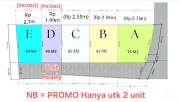 LT. 46 - 75m2 LB. 132 - 154m2 KT. 4 KM. 4 Carport Bebas Banjir One Gate System Akses Jalan Masuk Mobil - Harga Normal : vUnit A (75m2) : 2,75M vUnit B (63m2) : 2,55M vUnit C (63m2) : 2,55M vUnit D (46m2) : 1,99M Promo (On Progress) vUnit E (54m2) : 2,3M - Legalitas vSudah Pecah Sertifikat ✅ vSHM ✅ vPBG ✅ vPBB ✅ NB = v Foto Rumah Unit D v Langsung ke Owner ✅ v Jalan Masuk Mobil (-/+ 4 Meter / 1 Truk Engkel Masih Masuk) ✅