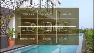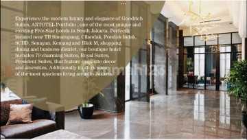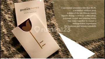Dijual Hotel Bintang 5 GoodRich Suites dimanage oleh Artotel, Kebayoran Baru, Jakarta Selatan Lokasi strategis di Jakarta Selatan 76 Kamar hotel + 1 Penthouse 500m² Luas tanah 2700m² Luas bangunan 11000m² Panjang Bangunan 135m² Lebar Bangunan 20m² Listrik 66000 Watt Jumlah lantai 8 + 1 lantai basement Carport 77 Mobil Dilengkapi dengan fasilitas seperti Fitness Center, Swimming Pool, Music Lounge, Coffee Shop, Resto and Bar, 5 meeting room Tahun dibangun 2018 Harga Jual 250M Nego