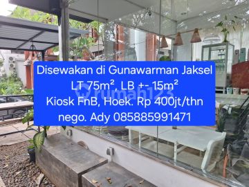 Disewakan Kiosk area premium jl Gunawarman Jaksel LT 75m² (estimate) LB +- 15m² (estimate) Kiosk FnB Hadap Timur Utara, Hoek Rp 350jt/thn nego harga tidak termasuk : - pajak - service charge (sampah, kebersihan luar, security gedung) - air dan listrik sesuai pemakaian Info Ady