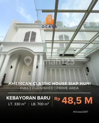 TURUN HARGA 49,5M > 48,5M NEGO!! FOR SALE / DIJUAL RUMAH AMERICAN CLASSIC SIAP HUNI TIRTAYASA - KEBAYORAN BARU, JAKARTA SELATAN FULLY FURNISHED, PRIME AREA Luas Tanah 330 m² (11m x 30m) Luas Bangunan 700 m² Bangunan Secondary 3 Lantai + Rooftop (Tahun 2017) Hadap Utara Fully Furnished Swimming Pool Lift Louser Kamar Tidur 5 + 2 Kamar Mandi 4 + 1 Powder Room 1 Laundry Room 1 Gudang 2 Swimming Pool Listrik 23000 VA Garasi 2 mobil Carport 2 mobil SHM HARGA Rp 49,5 M turun jadi Rp 48,5 M nego Ocasa3287 MENERIMA TITIPAN JUAL PROPERTY AREA JAKARTA & SEKITARNYA. HUB MELY 0878xxxxxxxx