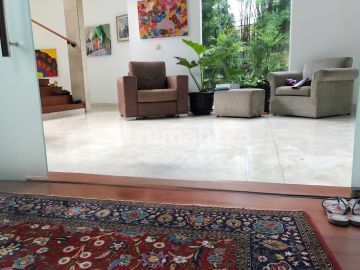 Rumah dijual di Kebayoran Baru Luas Tanah 775m (termasuk brand gang 814m) Luas Bangunan 827m. 2,5 Lantai. 4 Kamar Tidur, 4 kamar mandi Study room. Library. roof garden. Swimming Pool Garasi 2 Carport 3 Hadap Timur Kondisi tersewa sampai desember 2025 Sewanya Rp 117Jt per bulan. Dijual Harga Rp 100M