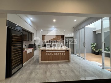 Baru Renovasi Furnished LT 246 m2 LB 540 m2 2 lantai Kitchen Set Bagus (Kulkas, kompor, Penyedot asap, microwave, oven) KT 5 KM 3 KT & KM ART R Keluarga luas Gudang Listrik 10.000 Watt AC CCTV Gordyn PAM Carport 2 mobil Water Heater Wiki Taman Hadap Barat SHM Harga Rp 14 Milyar Nego
