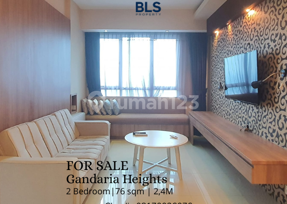 FOR SALE Apartment Gandaria Heights 2BR Location : Jl. KH. Moh. Syafi'i Hadzami No.8 10, RT.10/RW.6, Kby. Lama Utara, Kec. Kebayoran Lama, Kota Jakarta Selatan, Daerah Khusus Ibukota Jakarta 12240 Size: 76sqm Bedroom 2 Bathroom 2 Fully furnished Selling Price: Rp 240000xxxxtersewa s/d Desember 2026) Facility: kolam renang tropis, gym, lapangan tenis, taman bermain anak, area BBQ, keamanan 24 jam dengan kartu akses, serta parkir bawah tanah khusus. More info please call/wa Claudia : +6281xxxxxxxxwhatsapp available)