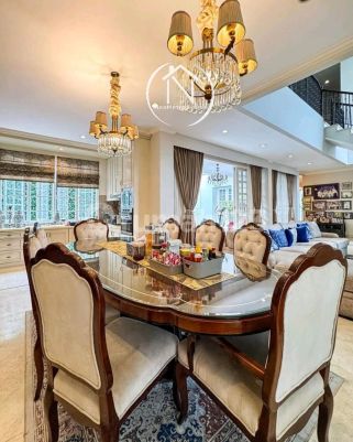 RUMAH TERAWAT, SIAP HUNI SEMI FURNISHED Luas Tanah 635 m2 Luas Bangunan 500 m2 Bangunan 2 lantai Kamar Tidur 6 Kamar Mandi 6 Kamar Tidur ART 4 Kamar Mandi ART 2 Swimming Pool Halaman Belakang Balcony Dry & Wet Kitchen Garasi 2 mobil Carport 4 mobil Hadap Barat & Utara