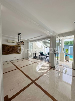 jalan depan rumah 2 mobil lebar, ada kolam renang, full furnished, sangat dekat dengan Mall PIM 1, 2, 3, lingkungan tenang tidak ramai asri.