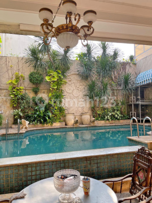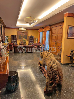 SPESIFIKASI UNIT - LT: 1380m, LB: 1200m - KT: 4, KM: 5 - KP: 5, KTP: 2 - Lantai: 2 - Listrik: 56.000 Watt - Garasi: 2 Mobil, Carport 6 Mobil - Hadap: Timur - Sertifikat: SHM KONDISI RUMAH - Single House, 2 Lantai - Jenis Bangunan : Secondary - Halaman : Depan, Samping, Belakang (Kolam Renang) - Kondisi Bangunan : Cukup Terawat - Bangunan Tahun : 2008 - Semi Furnished FASILITAS RUMAH - Living Room Rumah Luas (10x25meter) - Double High Ceiling Living Room (10meter) - Ruang Tamu Luas - 5 Kamar Tidur Dalam, 5 Kamar ART - Kolam Renang Halaman Belakang - Ruang Makan & Pantry - Dapur Basah - 2 Garasi Untuk 8 Mobil - Internet, TV Cable Ready