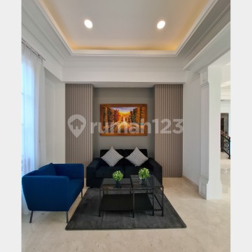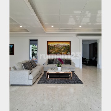 Brand New House Modern Classic Prime Area Kemang Jakarta Selatan Lokasi strategis, bebas banjir, area hunian favorit di area Kemang. Full Furnished Bangunan 2 Lantai + Basement Luas Tanah 517 m² Luas Bangunan 760 m² Kamar Tidur 6 (all en-suite bathroom) Powder Room 2 (atas & bawah) R Kerja/Study Room/Entertaintment Room R Tamu R Keluarga Atas & Bawah Lantai Marmer Slab Pantry 2 (atas & bawah) dengan Kitchen Cabinet Service Area dengan 3 Kamar ART (bed + lemari pakaian) + 1 KM ART. Gudang. Dapur + Kitchen Cabinet. Laundry Room incl Laundry Machine + Dryer Sanitary Grohe, Setara Toto Full AC utk semua kamar Water Heater 2 Garasi 7 Mobil Carport 3 Mobil Hadap Timur SHM Fasilitas : Private Swimming Pool Backyard Private Lift from Basement (6 person capacity) Kulkas Besar/Kecil 2 pintu side by side Stove Kompor Gas 4 Tungku Oven Listrik Microwave Water Dispenser Lemari Pakaian di semua kamar Listrik 23.000 watt Pos Sekuriti Harga Rp 33 M