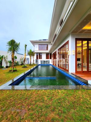 FOR SALE BRAND NEW FULLY FURNISHED AT KEMANG - Luas Tanah ± 900 m2 (fisik 1.100 m2) - Luas Bangunan ± 1.000 m2 - 7 bedroom + 3 - 7 bathroom + 2 - 6 garasi + 10 carport Lantai UTAMA - Reception Room LUAS to Terrace - Swimming Pool + Garden MEZZANINE - Lounge / Dining - Main Pantry - 2 Ensuits Bedrooms Lantai 3 - Pivate Family Room - 5 Ensuits Bedrooms - Powder Room - Family Pantry - 1 Study / Library (R.Kerja) Lantai Dasar Service : - 3 Kamar Tidur Pembantu - 2 Kamar Mandi Pembantu - 1 room Laundry - 1 Ruang Jemur - Dapur + Ruang makan ART / Supir Specs Materials : - Cat Dinding: ICI DULUX/ Mowilex atau setaraf - Cat Kusen, Pintu Jendela: PLITUR warna Natural - Kusen: Kayu Bangkiray - Daun Pintu/Jendela: Merbau, Tebal 5cm - Tinggi Pintu ± 285 - 4,50 cm - Genteng: Keramik - Kap Baja Ringan - Plafon Gypsum Tinggi 3,5 m s/d 4,5 m - Sanitare Grohe, Toto setaraf FASILITAS: - Kolam Renang - Teras wooden dek - Taman - Dapur Pantry + Cabinet & Dapur Pembantu cabimet - 16 Car Parking space: 6 Mobil Indoor Garage 10 Mobil Driveway - Wardrobes / Lemari Pakaian semua Kamar Tidur - Beds (Ranjang) - AC Cassete ~ Split DAIKIN sesuai kebutuhan Ruangan - Home LIFT - Garden 3 sisi depan, samping, Belakang - Kulkas Besar 2 Pintu side by side - Televisi - Oven Gas / Listrik - Microwave - Stove Kompor Gas 4 tungku - Kompor Dapur Pembantu - Ranjang Susun Pembantu - Semua Brand ditentukan dan discrecy Kontraktor Price : Rp 62 M Nego