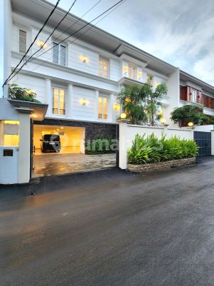 Brand new House @ kemang Jaksel American classic style Fully Furnished 1. Luas Tanah 517m² 2. Luas Bangunan 760m²(3Lantai) 3. Design: American Classic 4. Ruang Keluarga Besar Atas/ Bawah 5. 6 Kamar Tidur dgn semua Kamar Mandi di Dalam 6. 1 Ruang Kerja/ Kantor 7. 1 Ruang Tamu 8. 2 Powder Room Atas&Bawah 9. 2 Pantry Atas&Bawah Lengkap dgn Kitchen Cabinet 10. Service Area: 3 Kamar Pembantu(+bed&Lemari pakaian), Kamar Mandi, Gudang, Dapur+ kitchen Cabinet, Laundry Room termasuk Laundry Machine+ Dryer 11. KAP: Rangka Baja Ringan, Genteng Kramik/ GAF 12. Tinggi Plafon +-3,40 s/d 4m 13. Lantai: Marmer Sleb Besar 14. Pintu/Jendela Mix: Kayu MERBAU, BANGKIRAY, KAMPER... Semua Finishing WHITE DUCO 15. Tinggi Pintu 280-300cm 16. Sanitares: Grohe, Toto Setaraf 17. FULL AC Semua Rooms 18. 2Tabung Water Heater/ SOLARHAT 19. Cat: ICI Dulux/ Mowilex setaraf 20. Garasi utk +-12mobil: 8 mobil indoor Basement; Plus 4mobil Driveway FASILITAS: 21. Kulkas Besar/ Kecil 2 Pintu side by side 22. Stove Kompor Gas 4 tungku 23. Oven Listrik 24. Microwave 25. Water Dispenser pintu bawah 26. LIFT kapasitas 6 org 27. Listrik Kapasitas 23.000 watt 28. Kolam Renang + Air Terjun 29. Garden/Taman Luas 30. Lemari Pakaian Semua Kamar ●●● **Info Tambahan:* # Lokasi Strategis # Level Tinggi, Bebas Banjir # Merk/ Brand dr pd Perlengkapan diatas, ditentukan oleh Kontraktor # Perlengkapan Tambahan Lainnya di dalam Rumah, spt Sofa set, Beds, Dining Set, Lukisan dll, jika ada, merupakan Discrecy Kontraktor utk melengkapinya # Harga 38M nego