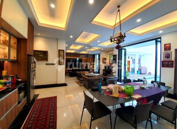 Rumah Baru & Mewah di Kemang Jaksel. Dalam komplek Bebas Banjir. - LT/LB 430/700 - Bangunan th 2024 - SHM - 4 Km Tidur, 7 Km Mandi - 4 km Tidur ART, 1 km mandi ART. - 2 Living Room, Lt 1 & Lt 2. - 3 Lantai. - Elevator - CCTV - Swimming Pool (4x10M). - Vertical Garden - Dapur Utama, Pantry & Dapur Service. - Kitchen Modena - Service Area & Roof Top di Lt 3. - Garasi 2 Mobil, Carport 3 Mobil. - Full AC. - Listrik 16.5 KW. - Kolam Ikan Koi - Lantai Marmer Putih Italy Slab besar. - Lantai Kamar Tidur Parket Kayu Merbau. - Pintu & Kusen Full Jati - Kamar Mandi Full Marmer. - Sanitary KOHLER - Full Customized Cabinet & Wardrobe di setiap kamar tidur. - Special designed House Exterior Lighting. - Lingkungan Town House. - 1 Gate Security.
