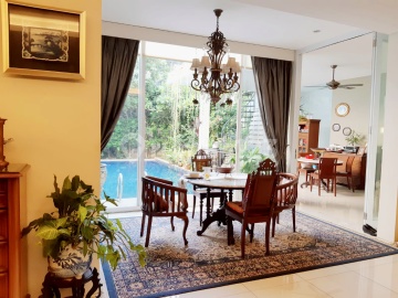 Rumah dijual di Kemang Timur LT 449m2. LB 500m. Master di lantai dasar samping swimming pool. Lantai atas 5 kamar masing2 ada shower, water heater & AC. Ruang keluarga luas, dapur bersih luas. 2 kamar pembantu dan kamar mandi. Semua kamar tidur ada AC. Parkir 3 mobil. Ada pos satpam. Harga 10.5m nego
