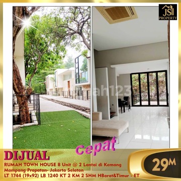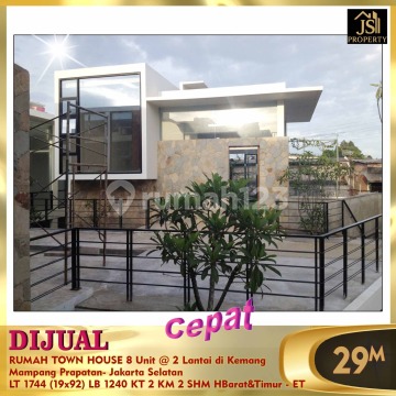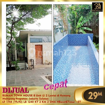 DIJUAL TOWN HOUSE - Rumah 8 Unit @ 2 Lantai di Kemang Mampang Prapatan- Jakarta Selatan * Private Pool dl * One gate system * Pos Security * Dibawah NJOP Luas Tanah 1.744 m² Dimensi 19 x 92 m²± Luas Bangunan 1.240 m² 2 Lantai Kamar Tidur 2 Kamar Mandi 2 UnFurnish Listrik 6.600 Watt/unit Air PAM Sertifikat SHM Hadap Barat & Timur Harga 29 M Nego