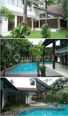 Dijual rumah bagus Jl Benda, Kemang. Bebas Banjir Luas Tanah: 1,000m2 Luas Bangunan: 1400m2. Very large garden Very high ceiling Very large Swimming pool Glass windows 5 bedrooms with 4 ensuite bathroom 1 powder room 1 study room 1 pool shower room 1 Kitchen 2 pantries Formal dining room Formal living room Family room Maid quarter High quality wood and marble Garage 5 cars . Harga 28M nego