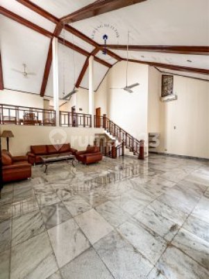 Rumah 2 lantai Luas tanah : 758 m2 Luas bangunan: 500 m2 3+2 Kamar Tidur 3+1Kamar Mandi Swimming pool hadap timur SHM Furnished Listrik 23.000 watt Air sumur Posisi di ujung (tentram, tidak berisik) Garasi 2 Carport 4 mobil