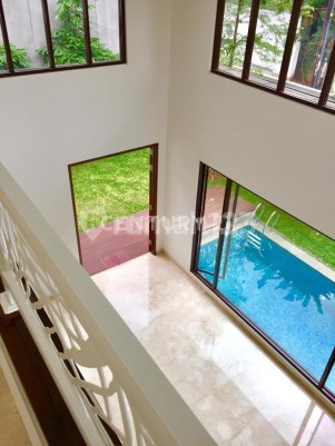Dijual Rumah di kemang Posisi di Hook. Hadap Utara - Barat. luas tanah: 443 m2 luas bangunan: 450 m2 Sertifikat Hak Milik Swimming Pool KT master di lt.bawah 4 kamar tidur, 2 kamar mandi dalam 1 kamar mandi luar 1 powder room 2 kamar tidur pelayan 1 kamar mandi pelayan 1 kamar mandi sopir 1 area cuci jemur 1 area setrika 1 dapur bersih (pantry) 1 dapur kotor 3 gudang 2 mobil garasi taman depan dan dalam AC 6 unit harga: Rp. 19.5 M (nego) #152019 R