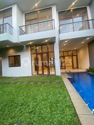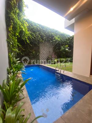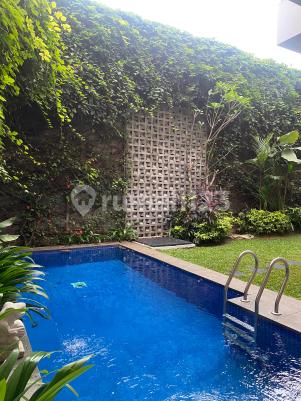 Rumah modern dalam compound aman, dilengkapi kolam renang pribadi, taman kecil asri, serta ruang keluarga luas. Lokasi strategis di Kemang dekat Hero Supermarket dan jalan kaki ke Kemang Raya yang penuh restoran, kafe, dan dekat ke sekolah internasional. Cocok untuk keluarga ekspat maupun lokal. Detail rumah Luas tanah: 450 m2 Luas bangunan: 460 m2 4 Bedroom + ensuite Bathroom Study room Cozy back terrace Beautiful kitchen with island Harga sewa: Rp 795jt /tahun ($4,000 USD /month)