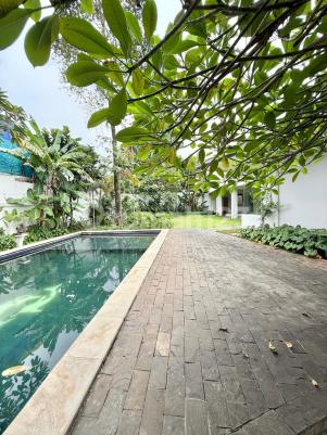 One storey house new renovated with garden and swimming pool located in a compound in a quiet area with strategic location, easy access to Mampang and Kuningan, Cipete, and Kebayoran Baru with specifications as follow : Land : 994 sqm building : 401 4 bedrooms 3 bathrooms 1 study room garage available carport available private garden private swimming pool Rental Price USD 2600/month(exc tax 10%, and compound fee) For inquiry : whatsapp +62813xxxxxxxx Email joesagala@********