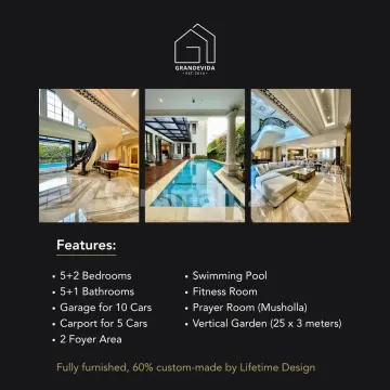Rasakan kemewahan hidup di rumah karya Lifetime Design yang dirancang untuk mendukung gaya hidup modern. Rumah ini berlokasi di Kemang dan hadir dengan interior fully furnished. KONDISI RUMAH: • Bangunan Baru dan Mewah, High Specifications. • Jenis Bangunan: Secondary • Halaman: Depan, Belakang. • Void tinggi di tengah ruangan. • Tahun Bangunan: 2020 • FULLY FURNISHED ——————————— FASILITAS RUMAH: • Private Pool. • Private Security Post. • Internet and TV Cable Ready. • Teras Belakang • AC setiap kamar • Modern Kitchen Set • TV Internet • Balkon dan Teras. ——————————— SPESIFIKASI UNIT: