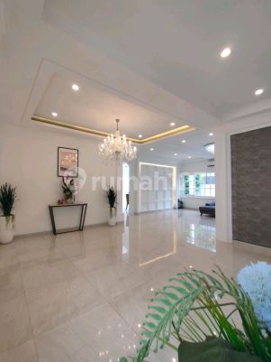 Jual Cepat Belum pernah ditempati, baru direnovasi LT : 973 m² LB : 1100 m² + 48 m² (gedung serbaguna) Kamar Tidur : 4+2 Kamar Mandi : 4+1 Sertifikat : shm Listrik : 16.500 watt Hadap mana : Utara tmr (Hoek) Berapa lantai : 2 Garasi : 2 Carport : 12 Gedung serbaguna Swimming pool Outdoor space lt 2 Pos security Pemanas air ariston 2 AC 4 bathtub 3 dikamar atas dapur bersih dapur kotor Harga ; 26 M (nego)