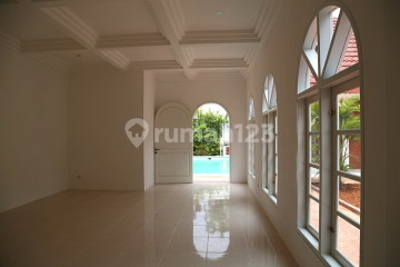 Rumah disewakan di Kemang Luas tanah 836 Luas Bangunan 300 kamar tidur 4+2 Kamar mandi 4+1 Paviliun Kolam renang 6 unit AC 3 unit water heater Listrik 16,500 Garasi 2 + 2 Halaman depan luas 2 lantai Harga 450jt/th (nego)