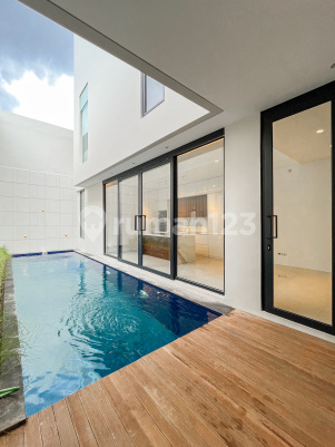 HOUSE FOR SALE - [KEMANG] BRAND NEW, MODERN TROPICAL HOME, VERY AESTHETIC, AREA BEBAS BANJIR. ----------- KONDISI RUMAH: - Single House - Jenis Bangunan: New - UNFURNISHED ----------- FASILITAS RUMAH: - Halaman: Depan - Swimming Pool - Instalasi Internet Ready - Lights all LED - Ruang Tamu - Ruang Keluarga - Dry Kitchen - Wet Kitchen - Sanitary by Kohler - Kitchen Set by BOSCH - Gudang ----------- SPESIFIKASI UNIT: LT: 161 m² | LB: 262 m² KT: 4 | KM: 4 KP: 1 | KMP: 1 Bangunan: 2.5 Lantai Listrik: 5.500 Watt Carport: 2 Mobil Hadap: Utara SERTIFIKAT: SHM PRICE: Rp 8.5 M (Nego Tipis) ----------- #Bp