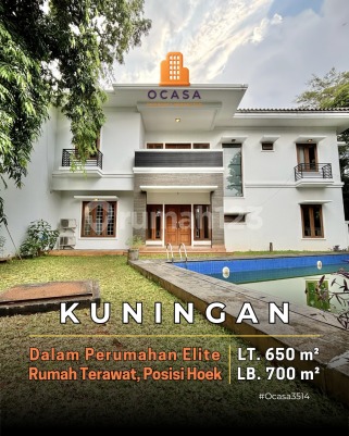 TURUN HARGA 65M > 50M NEGO!! FOR SALE - KUNINGAN BANGUNAN 2 LANTAI SANGAT TERAWAT LINGKUNGAN ELITE, DALAM PERUMAHAN BESAR Area Hijau dan Tenang Row Jalan Lebar Luas Tanah 650 m² Luas Bangunan 700 m² Single House Bangunan Secondary Bangunan 2 Lantai Posisi Hoek Hadap Utara dan Timur SHM Kamar Tidur 5 (kamar utama di lt. dasar) Kamar Mandi 5 Kamar Tidur ART 2 Kamar Mandi ART 1 Ruang Keluarga Ruang Makan Swimming Pool Halaman Depan & Belakang Wet and Dry Kitchen Basement Listrik 23.000 VA Garasi 2 mobil Carport 2 mobil Harga Rp 65 M turun jadi Rp 50 M (Nego) Ocasa3514