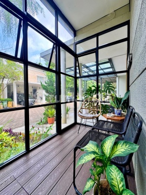 FOR SALE Dijual rumah siap huni di SERENIA HILLS, LEBAK BULUS Jakarta Selatan Kondisi furnished Lingkungan sangat nyaman & private dengan fasilitas Sports Club yang lengkap SPESIFIKASI • SHM • Luas Tanah : 181 m² • Luas Bangunan : 290 m² • Bangunan 2 lantai • 3 Kamar tidur (1 master bedroom + walk in closet + en suite) • 4 Kamar mandi (3 kamar mandi di dalam masing² kamar tidur) • Kamar tidur ART 1 • Kamar mandi ART 1 (sudah direnovasi) • Mini rooftop / multipurpose area / laundry room • 3 AC + 4 ceiling fans + fans • Home library + home office • Furnished - built in furniture & kitchen) • Gated community • Screened porch terrace Harga Sewa : 7,2 M (nego)