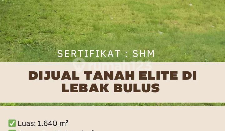 DIJUAL TANAH ELITE, INVESTASI JANGKA PANJANG* COCOK UNTUK KOS ELITE, CLUSTER EKSKLUSIF ATAU VILLA PRIBADI *Lebak Bulus - Jakarta Selatan* *Spesifikasi:* - LT 1.640m2 - Sertifikat SHM - Lokasi Strategis Di Kawasan Premium & Tenang Gunung Balong *Keunggulan:* • Dekat MRT Lebak Bulus (10 menit) • Akses cepat ke Tol JORR • Lingkungan elite, bebas banjir • Dekat TB Simatupang & Pondok Indah (Lb) Harga 12JT/M2 Total 19,6M Nego Keras